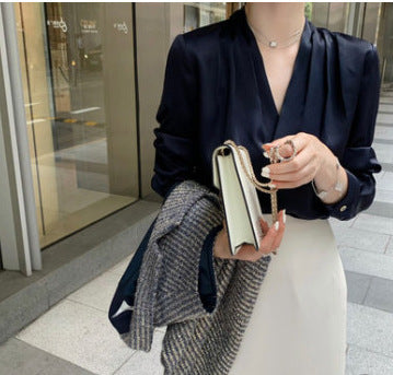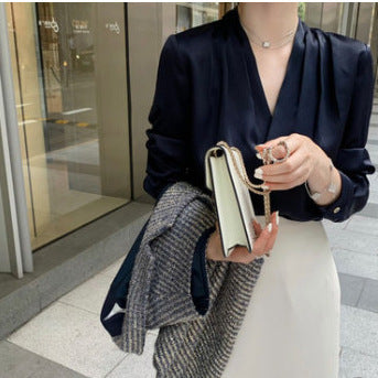 5 Spring And Autumn V-neck White Shirt Women's Long Sleeve -
