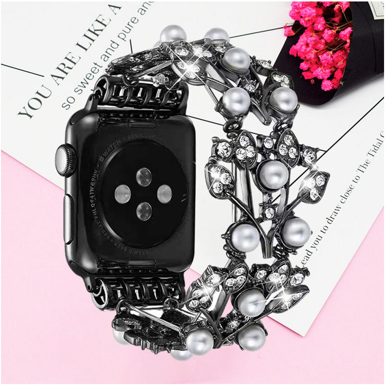 Pearl Diamond Leaf Smart Strap Watch Bracelet